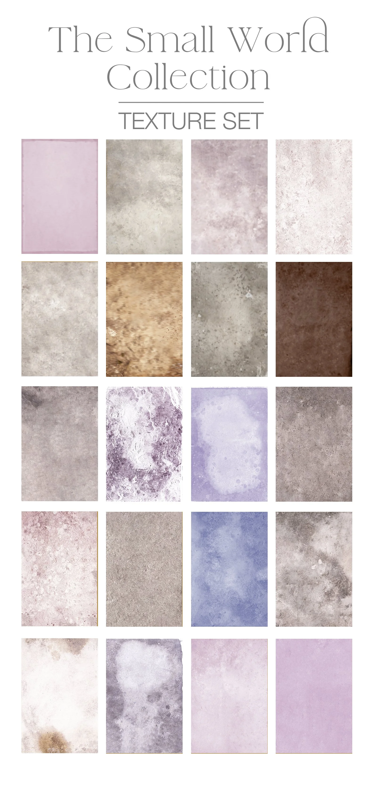 This set is made up of twenty textures - use them on their own, in multiples or with the colour versions - endless playtime and combinations. Find your unique signature style with the Small World Collection Texture Set.